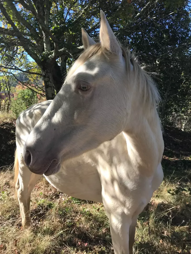 Just outside the French town of Rennes les Bains, lives Keyrian, a white gelding with blue eyes and the calmness of an old soul. Rennes les Bains is in the Aude area, known for the history of the Cathars and a place of spiritual pilgrimage for many.
